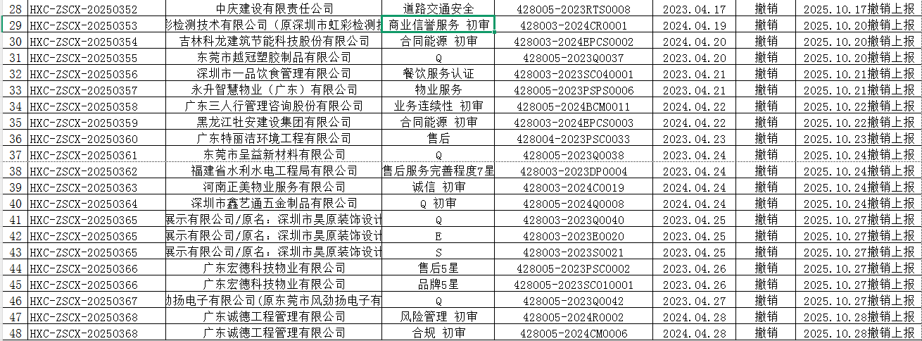 您的位置: 首頁 新聞中心 公司公告 撤銷公告 2025年10月份認證證書撤銷名單