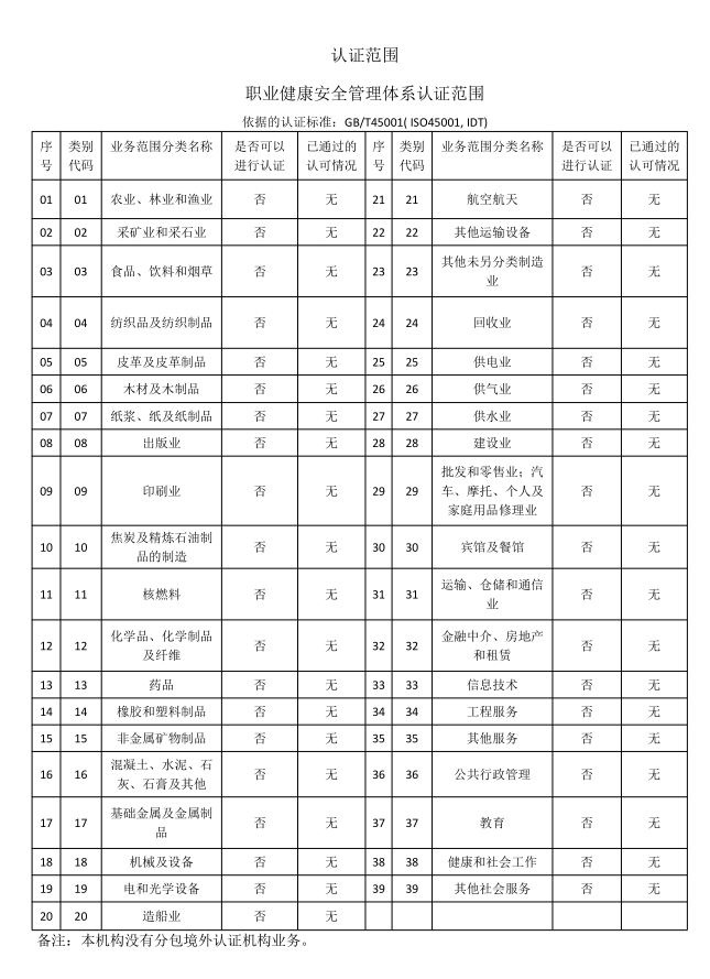 職業(yè)健康安全管理體系認證范圍...